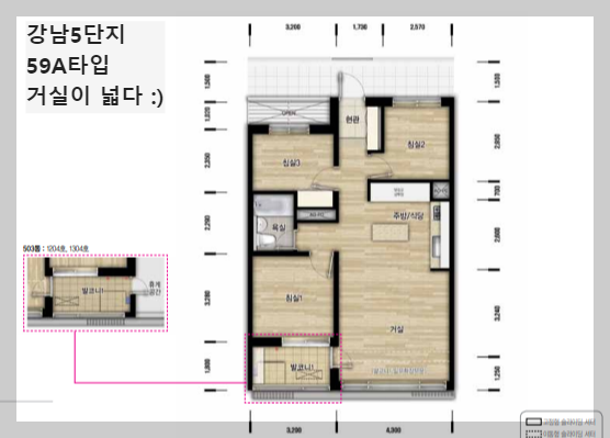 59타입 그리고 84타입 모두 거실이 넓게 나왔다.
