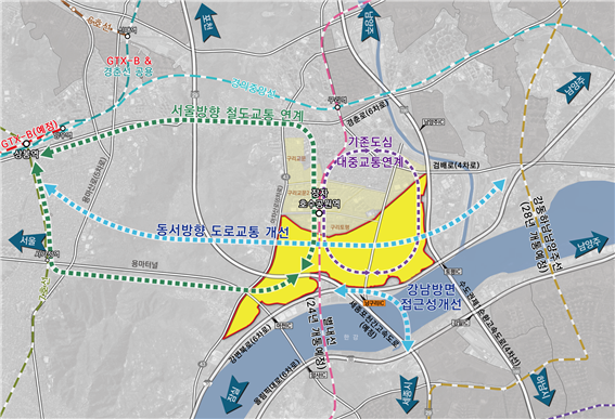 철도역(상봉 망우 장자호수공원) 연결 대중교통망 구축, 광역도로(강변북로, 세종포천고속도로) 연계 강화
