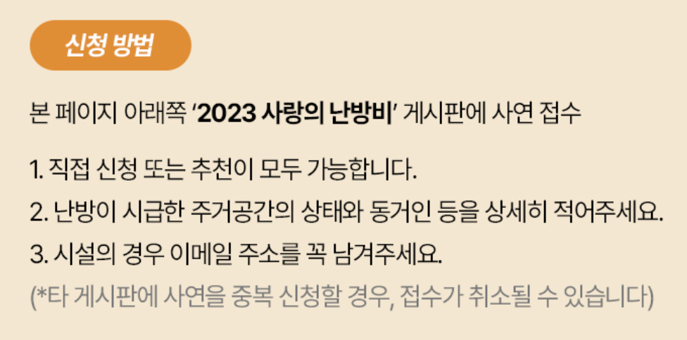 아래 2023 사랑의 난방비 게시판에 사연접수