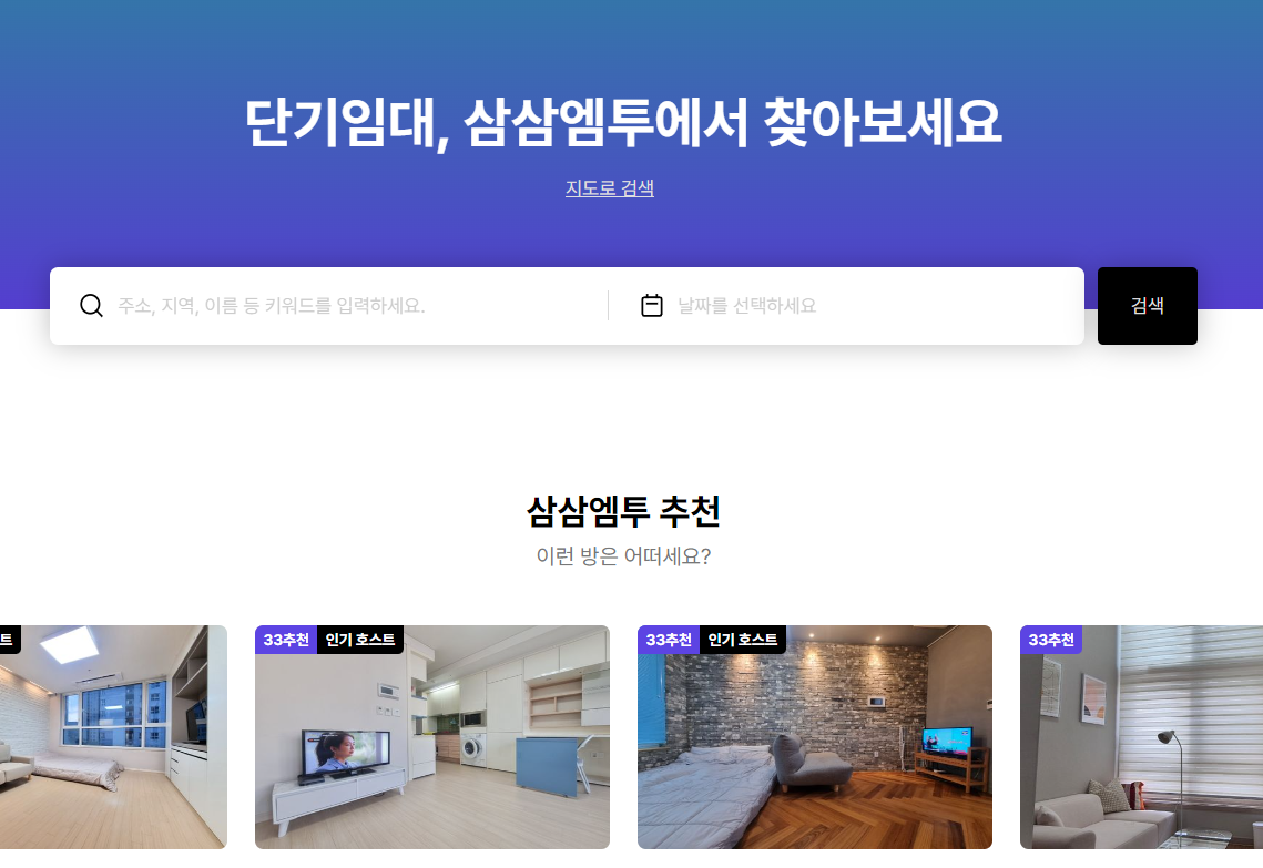단기임대 어플 삼삼엠투는 전국적으로 다양한 원룸 오피스텔 등 원하는 옵션을 쉽게 검색가능하며 반려동물 동반여부도 쉽게 설정이 가능합니다.