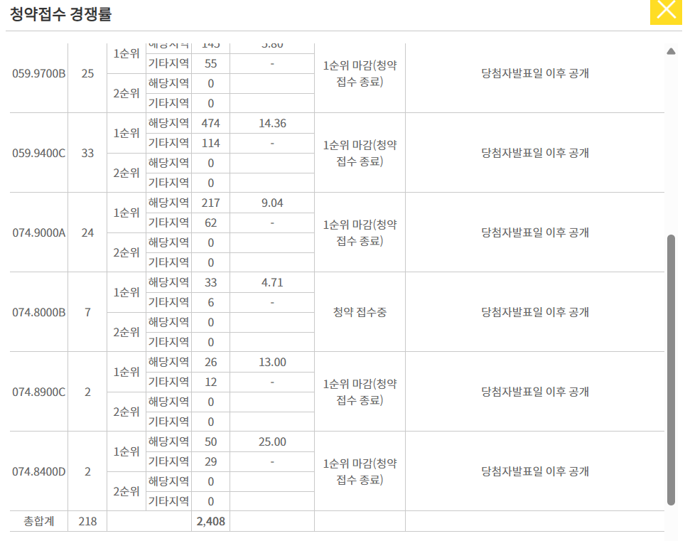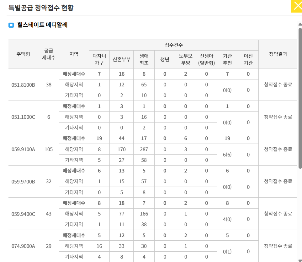 ✅메디알레 최고경쟁률 74타입 25대1입니다.