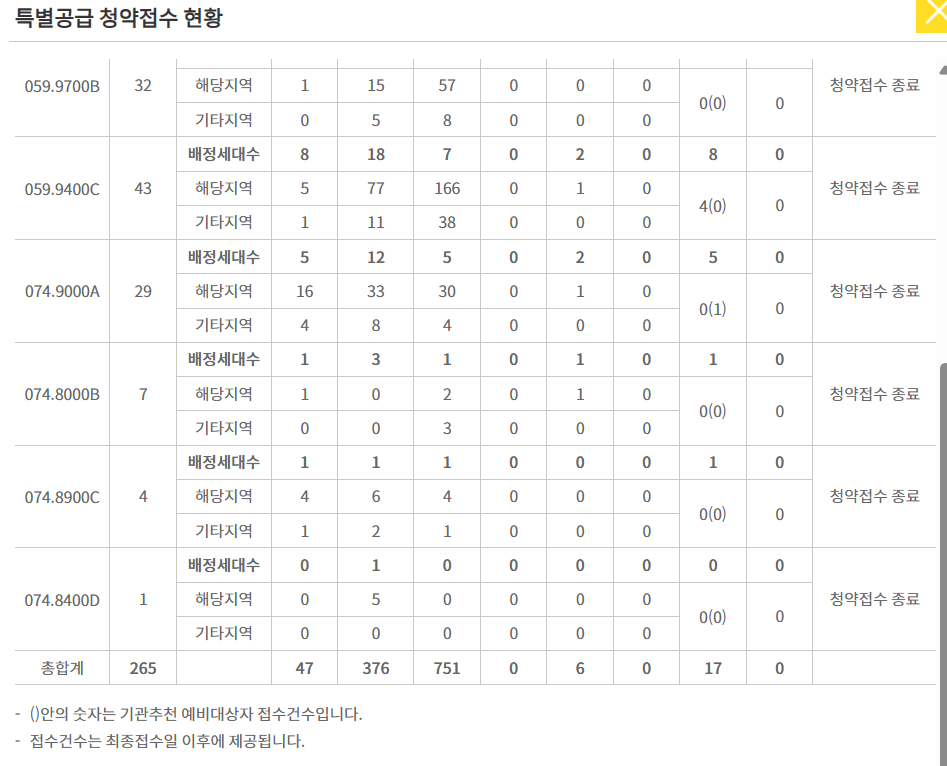 ✅ 특별분양 265세대 공급에 1000명 넘게 접수하며 일반공급까지 완판을 예상했는데 완판입니다^^