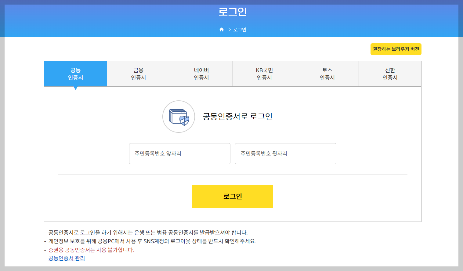 직접 홈페이지에 들어가서 로그인 연습하세요.