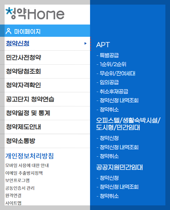 ✔️ 홈페이지 좌측 청약신청 > 무순위