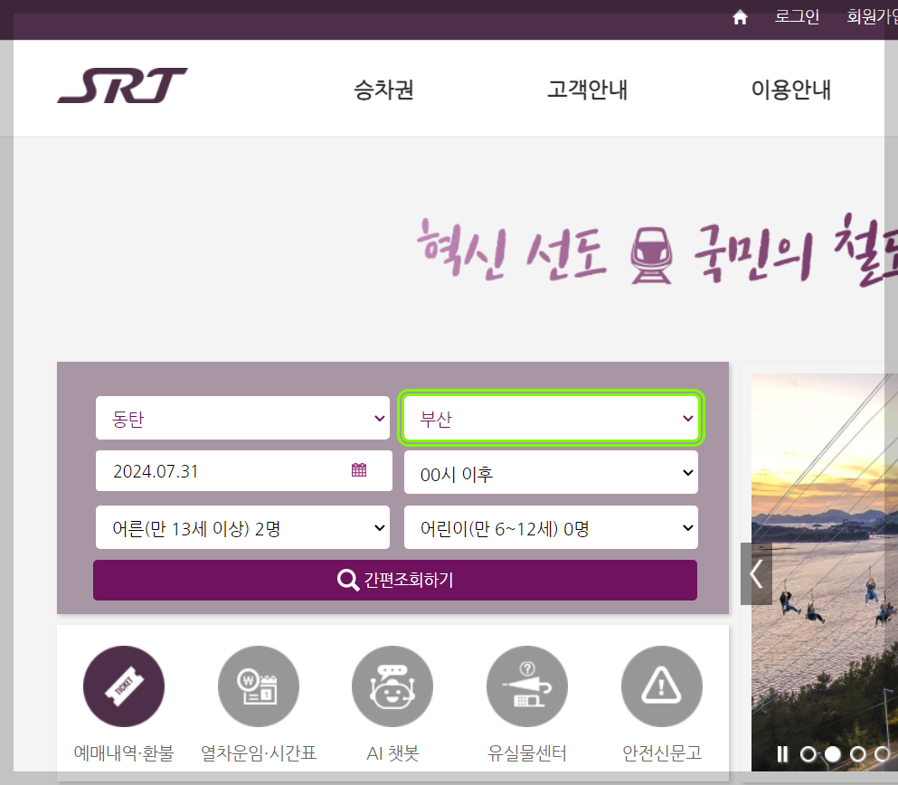 동탄역에서 부산역 SRT 예매방법