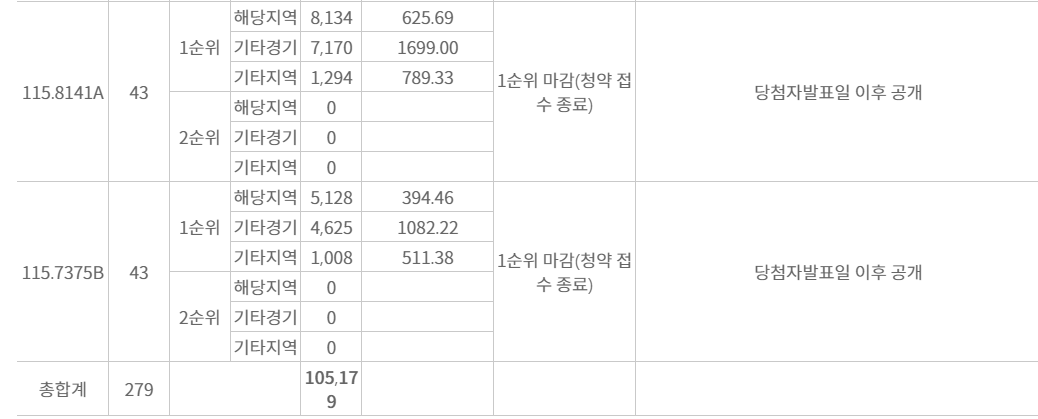 모두 10만 명 이상 청약 접수를 했고 최고 경쟁률 95a타입 1900대 1