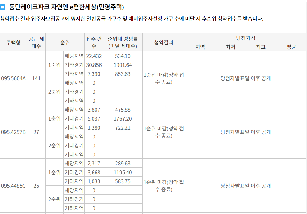 동탄레이크파크 자연 앤 이편한세상 경쟁률 대박!