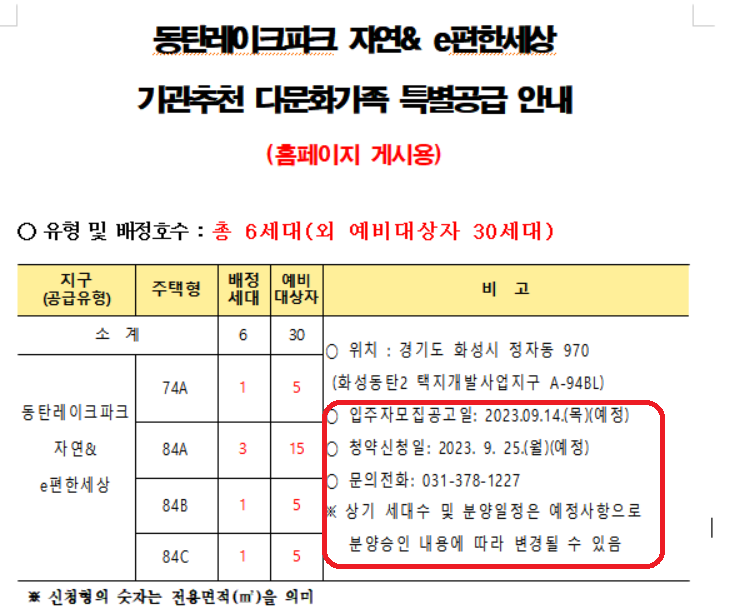 보통 장애인, 다문화, 중소기업 등 특별공급 소수의 특별공급 공고문이 먼저 올라오면 그 공고문에 맞게 입주자 모집공고가 올라오곤 한다.