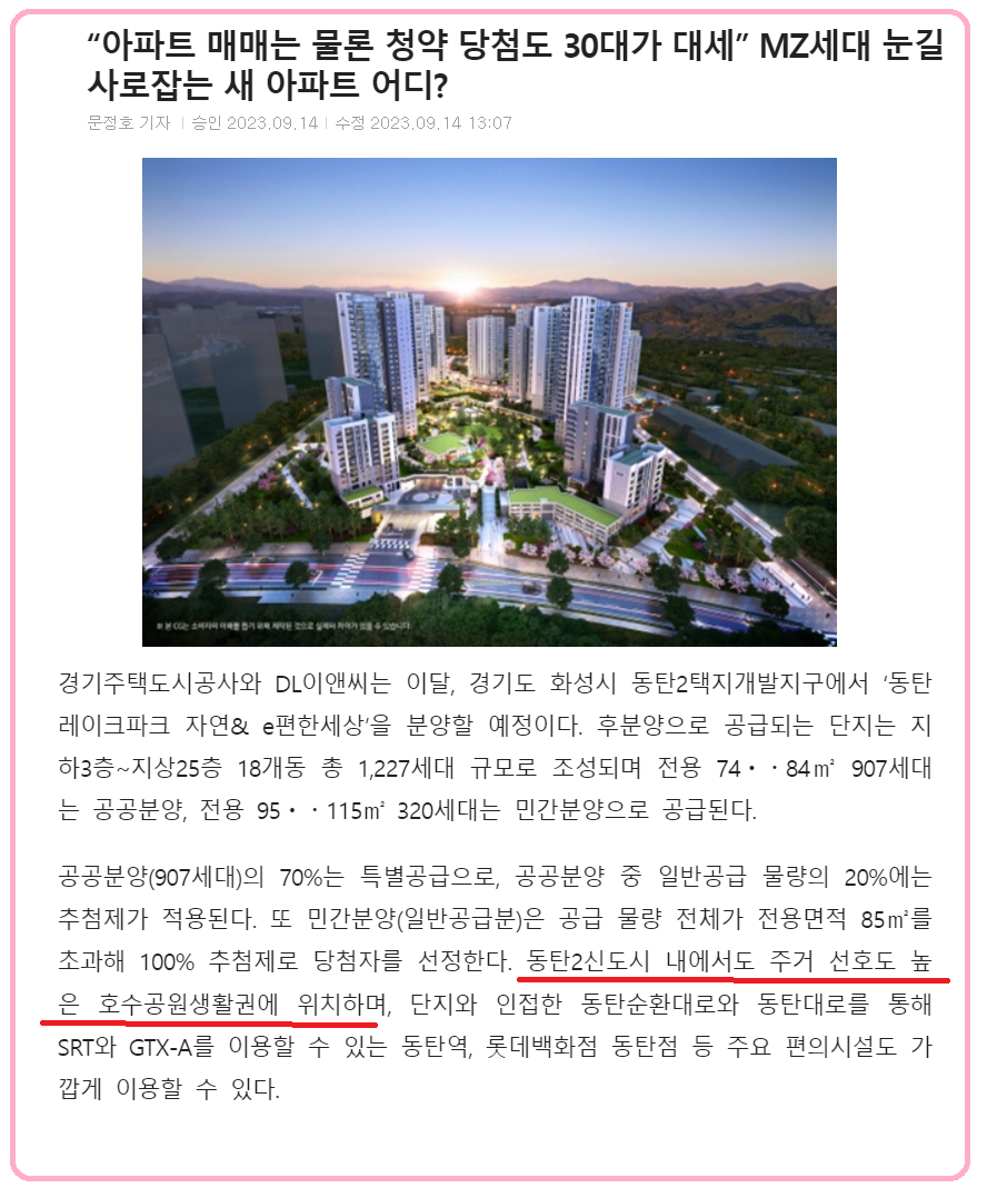 [공공분양] 동탄 레이크파크 자연 앤 이편한세상 특별공급안내 공공분양 민간분양 함께진행! ✅ (주위 자연앤푸르지오와 모집 방식 동일! ) 2023년 9월중 공급예정인 동탄 레이크파크 자연 앤 이