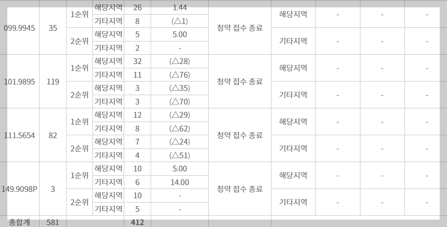 ✔️경쟁률은 84T타입이 1순위 49대 1, 2순위 64대 1로 가장 높았습니다.