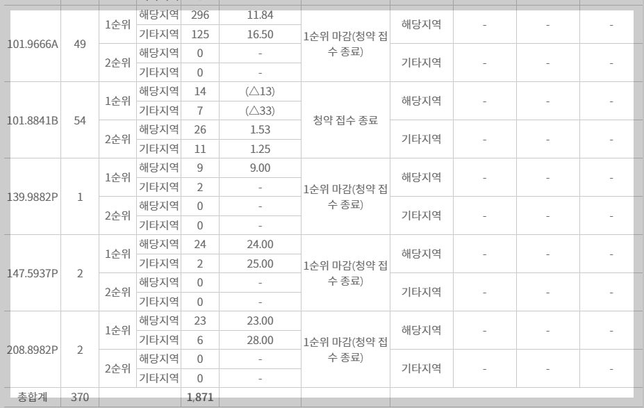✔️전체적으로 370세대 모집공고에 1800건 넘는 높은 접수건수가 있었습니다.