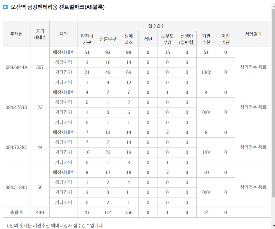 오산역 금강펜테리움 최고경쟁률 71:86대1 입니다 🎉