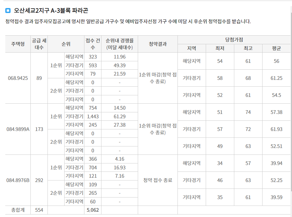 오산세교파라곤 최고 경쟁률 61.26입니다 🎉또한 당첨가점도 아래서 확인이 가능합니다. 당첨 최고 가점은 74점입니다.