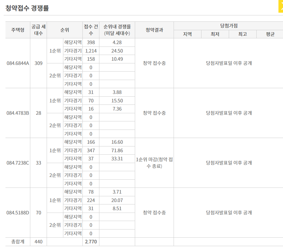 A13블록 오산세교 호반써밋 본청약 최고경쟁률은 9대 1입니다. 🎉