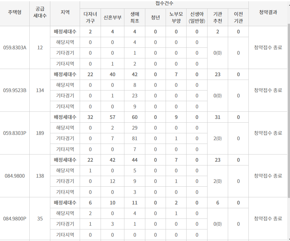 (왼쪽) 특별공급 경쟁률 / (오른쪽) 1순위 경쟁률