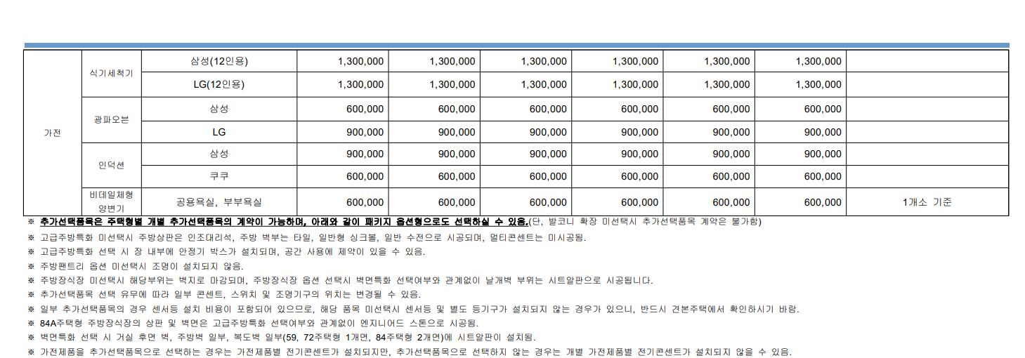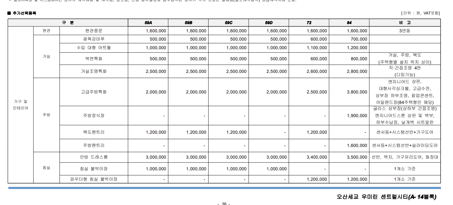 ✨✨기본 분양가격 외 추가로 돈을 내야 해주는 옵션입니다.