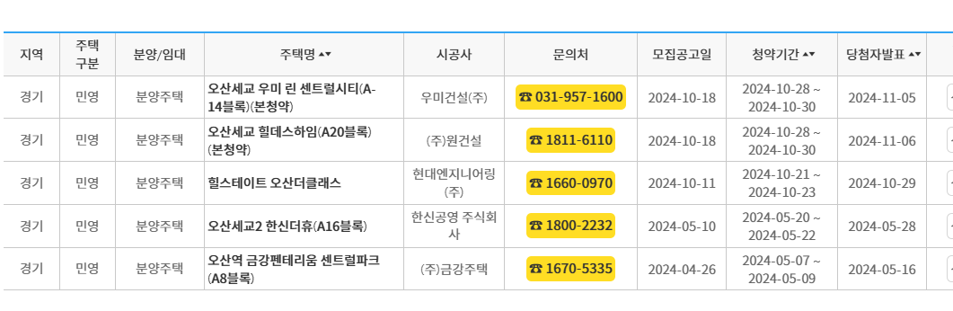 아래는 2024년 오산시 신축아파트 모집 공고문입니다.