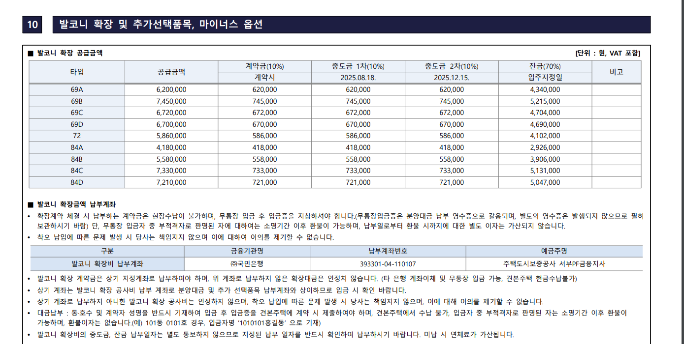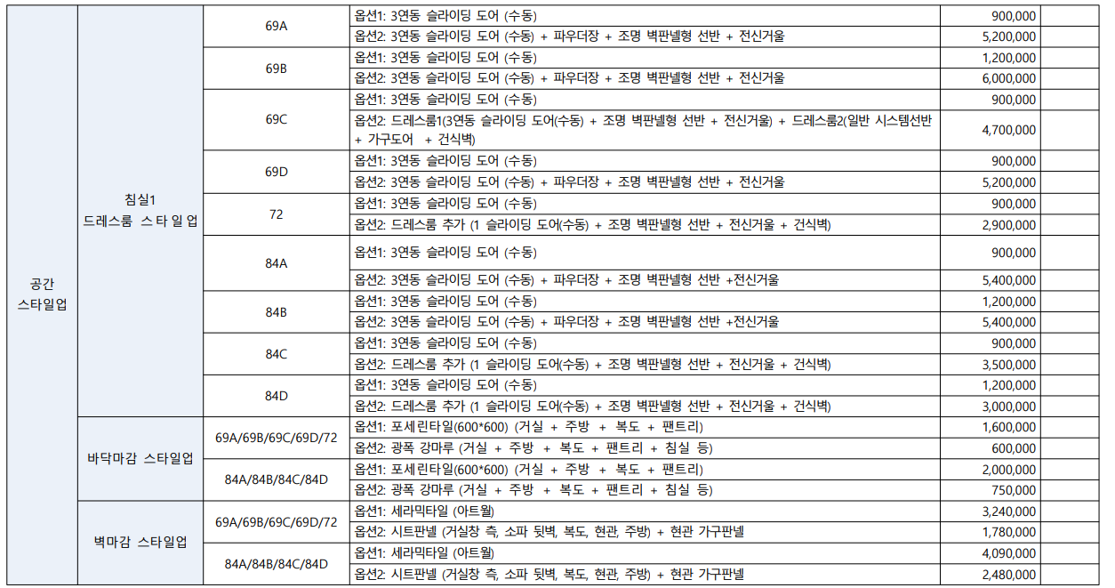 [오산세교] 한신더휴 A16블록 분양가격-옵션가격