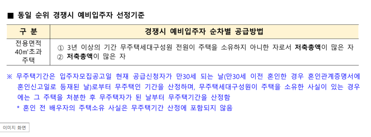 경쟁 시, 만 30세부터 3년 이상 무주택+청약통장 금액순으로 뽑음