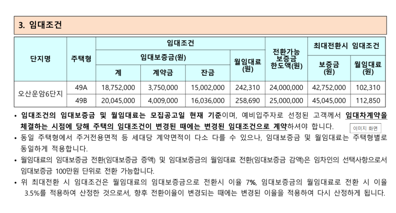 오산시 다른 임대아파트의 조건도 알아보겠습니다.