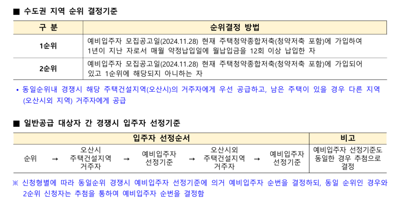 오산시 운암6단지 동일 순위 경쟁시 예비 입주자 선정기준 입니다.