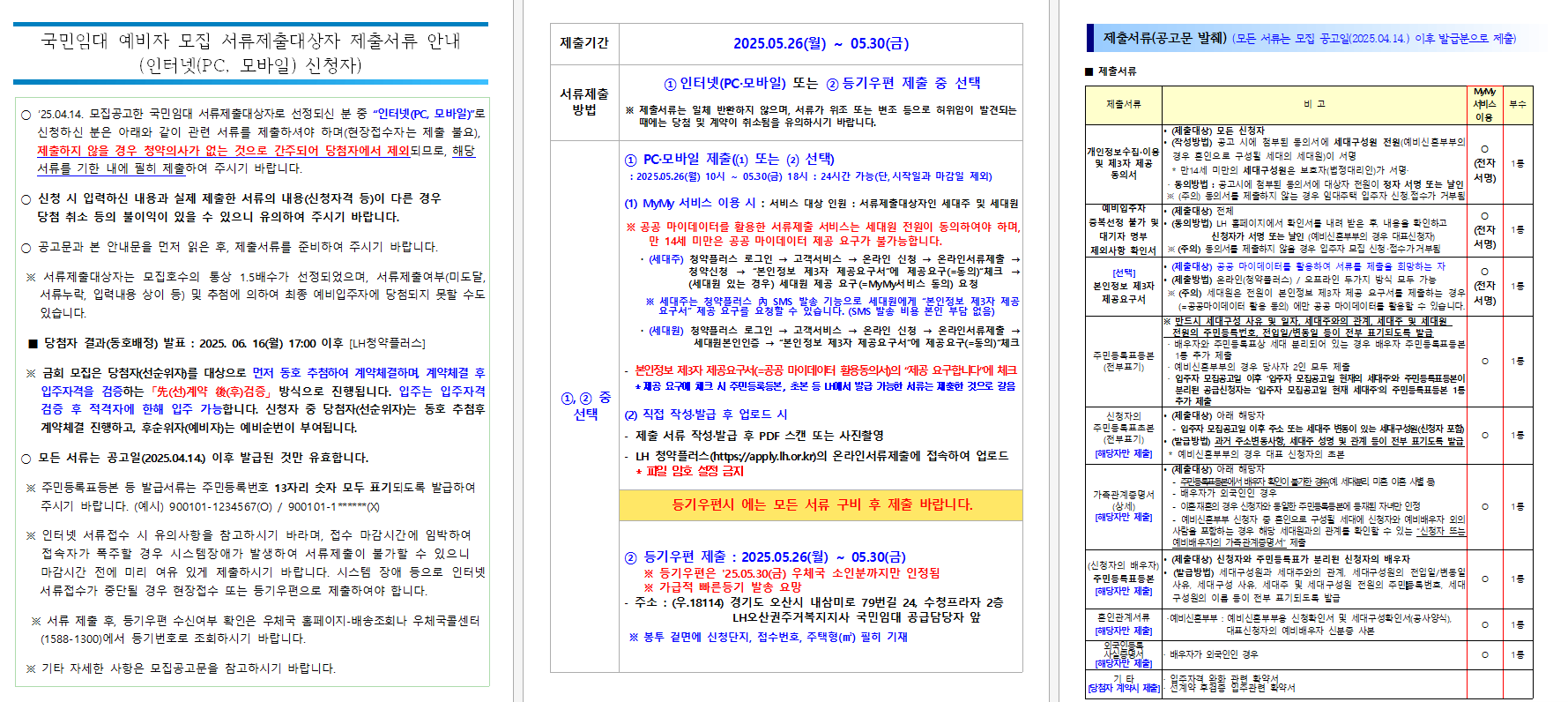 🔴오산 국민임대아파트 서류제출합격조회 및 제출서류안내
