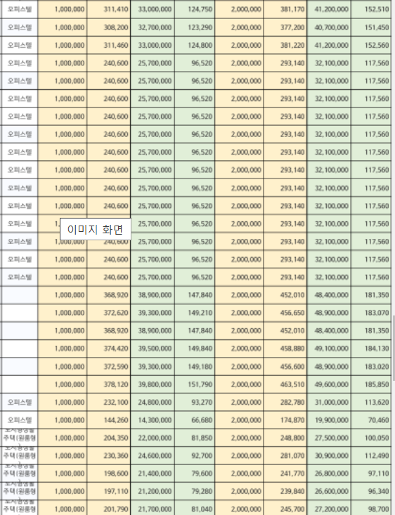 임대료 및 보증금 차이 있습니다.