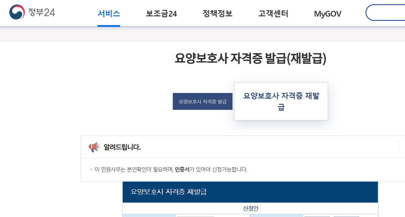 [국가자격증] 요양보호사 정부 24 재발급하기