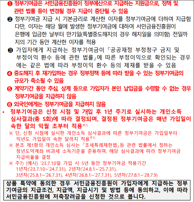📝정부 기여금은 만기해지(특별중도해지 포함)시 이자소득과 함께 지급한다.