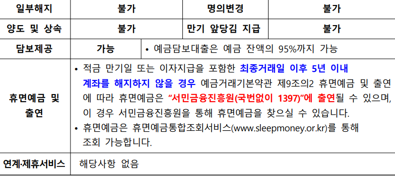 ✅ 일부해지 / 명의변경 / 양도및 상속 / 만기 앞당김 지급 불가능👇👇