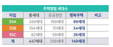 ※ 447세대 중 298세대는 신혼희망타운 공공분양으로, 나머지 149세대는 행복주택으로 공급하는 소셜믹스형 주택입니다.