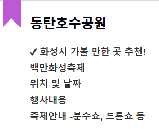 ⛳ 화성시에서 백만화성축제라는 곳을 이곳에서 할 정도로 화성시 가볼 만한 대표장소라고 할 수 있음