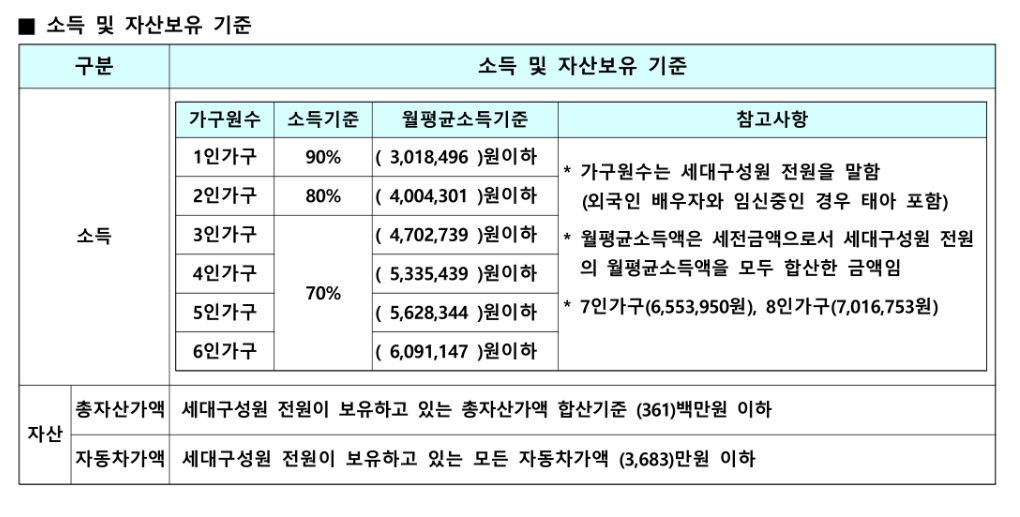 입주자모집공고일 현재 무주택세대구성원으로서 소득 및 자산보유 기준을 충족하는 사람 - 입주 시까지 무주택세대구성원을 유지해야 함 ( 세대구성원 모두 주택 또는 분양권 등을 소유하고 있지 아니할 것)