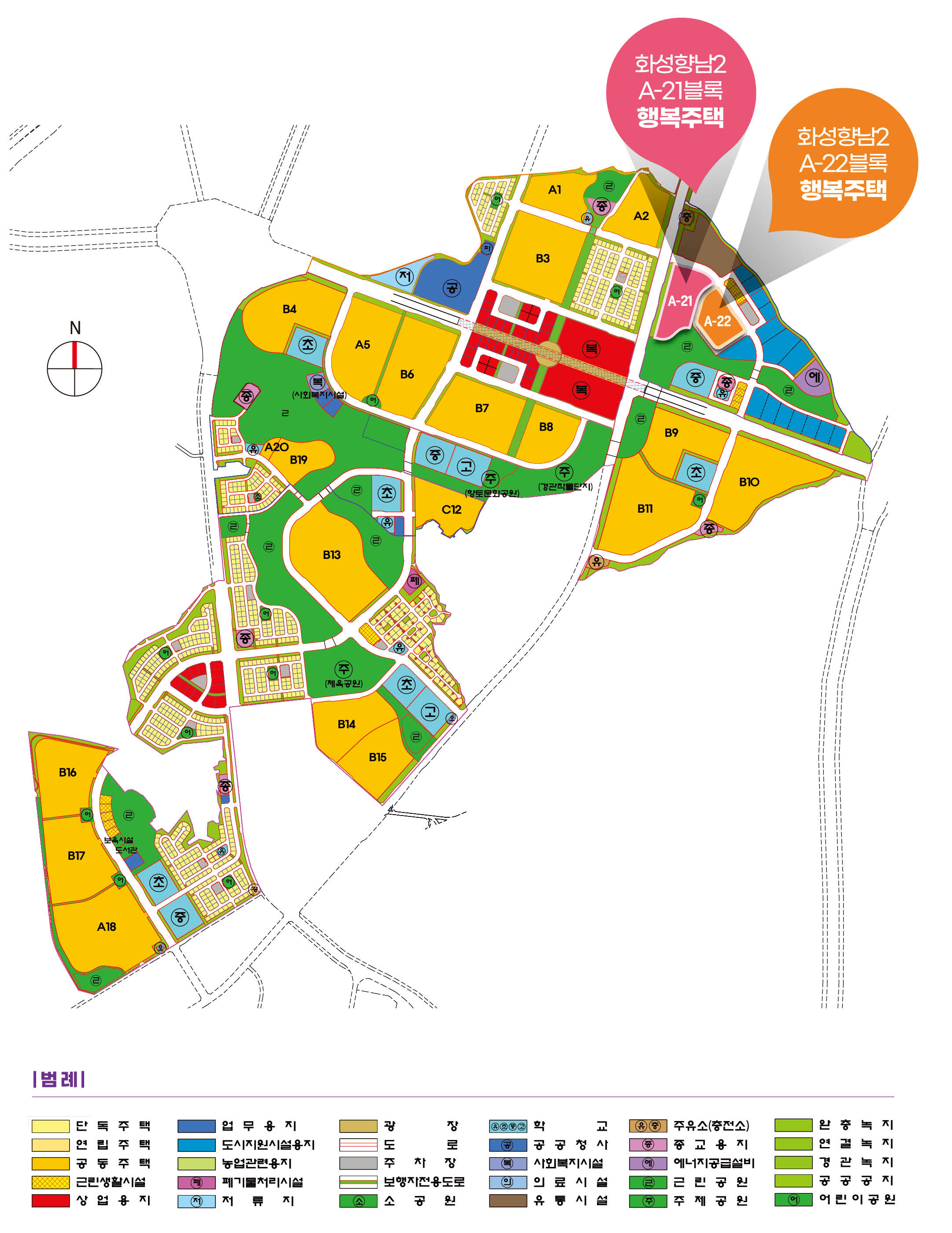 이번 A21,22 블록은 향남 2지구와 가깝다.