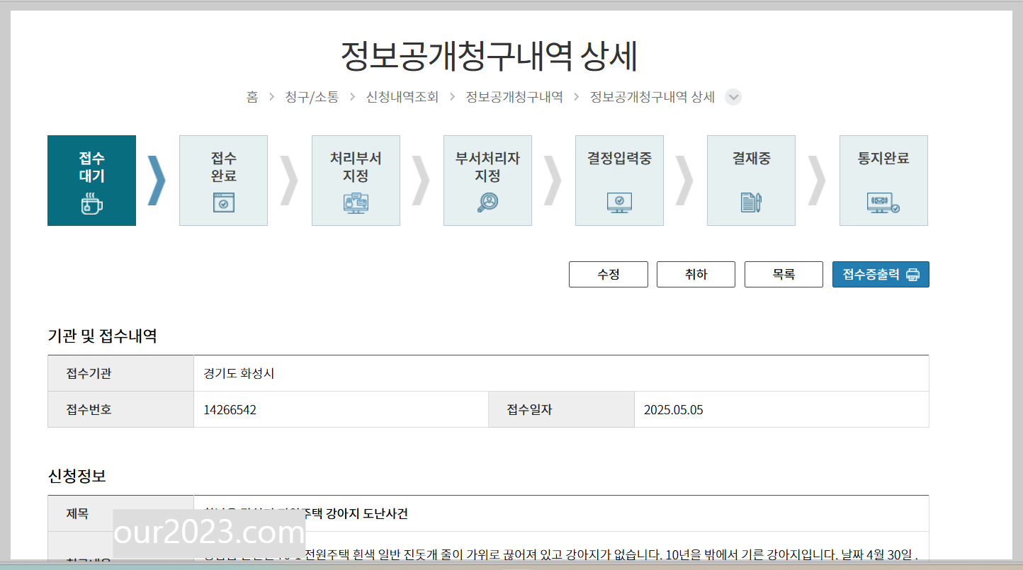 🟡 화성시 전원주택 강아지 도난사건 cctv 공개 열람 청구신청