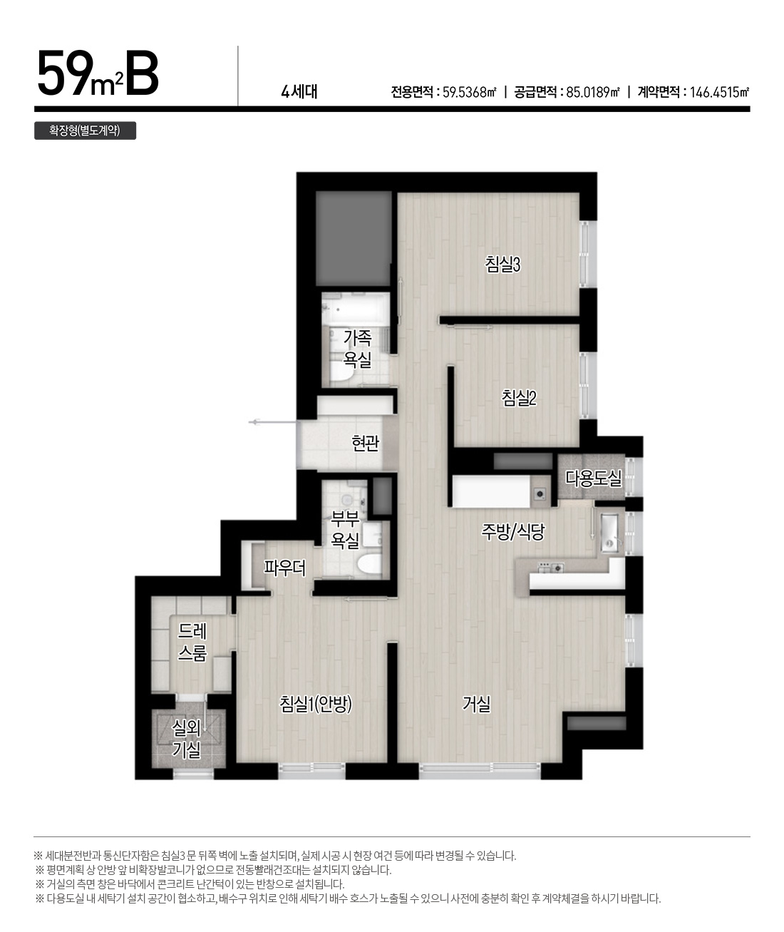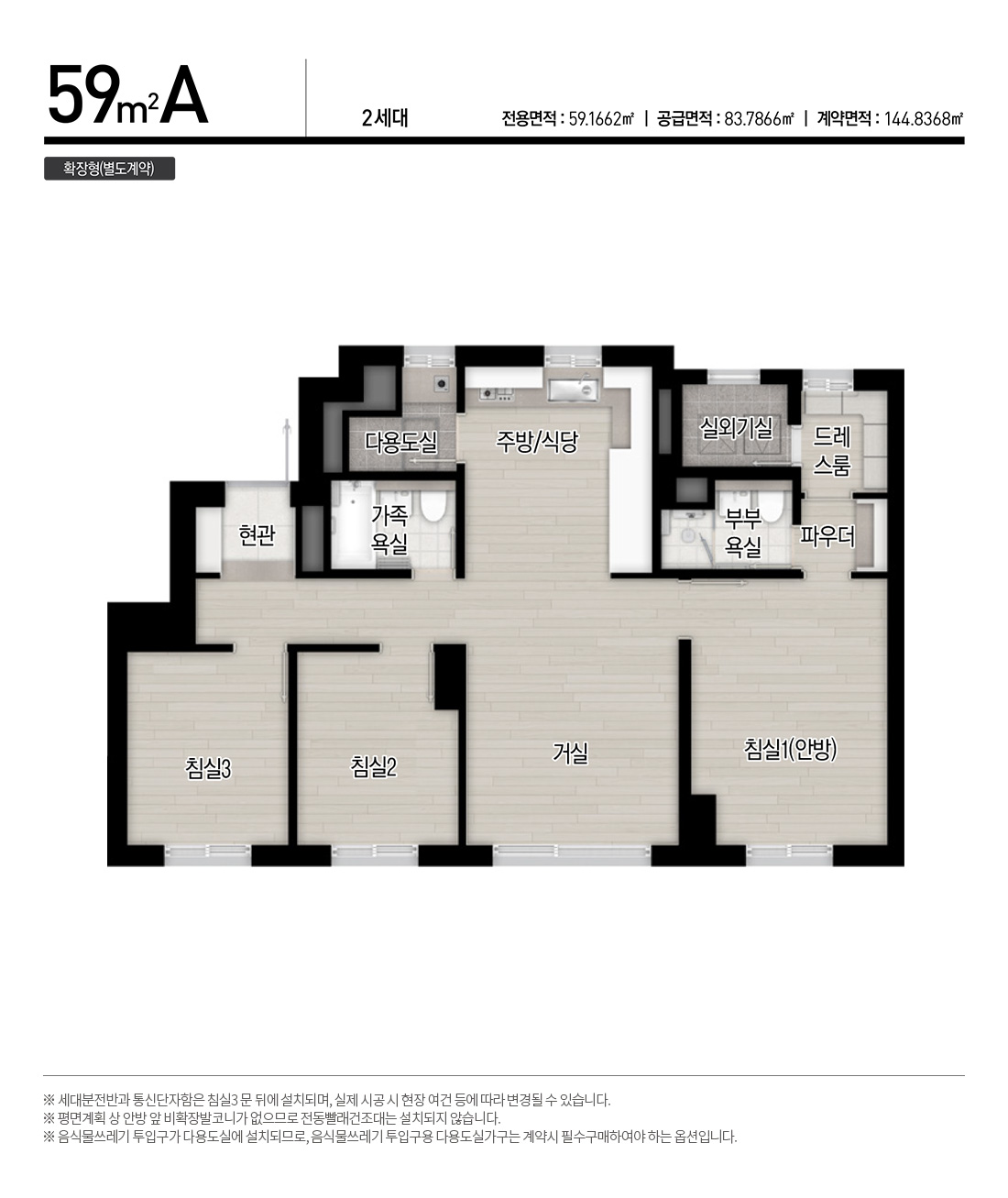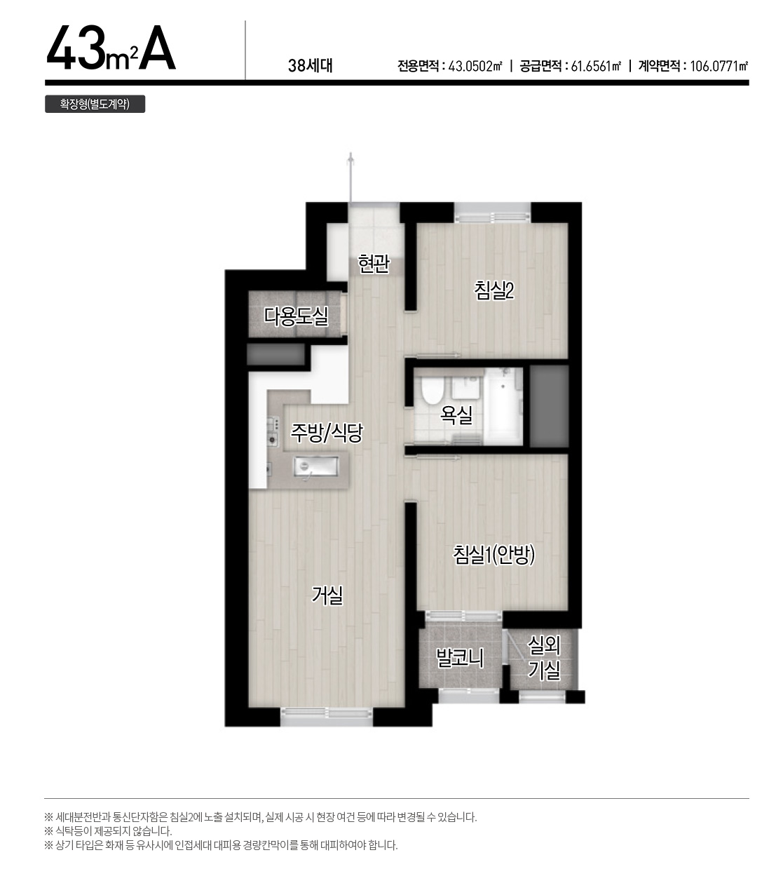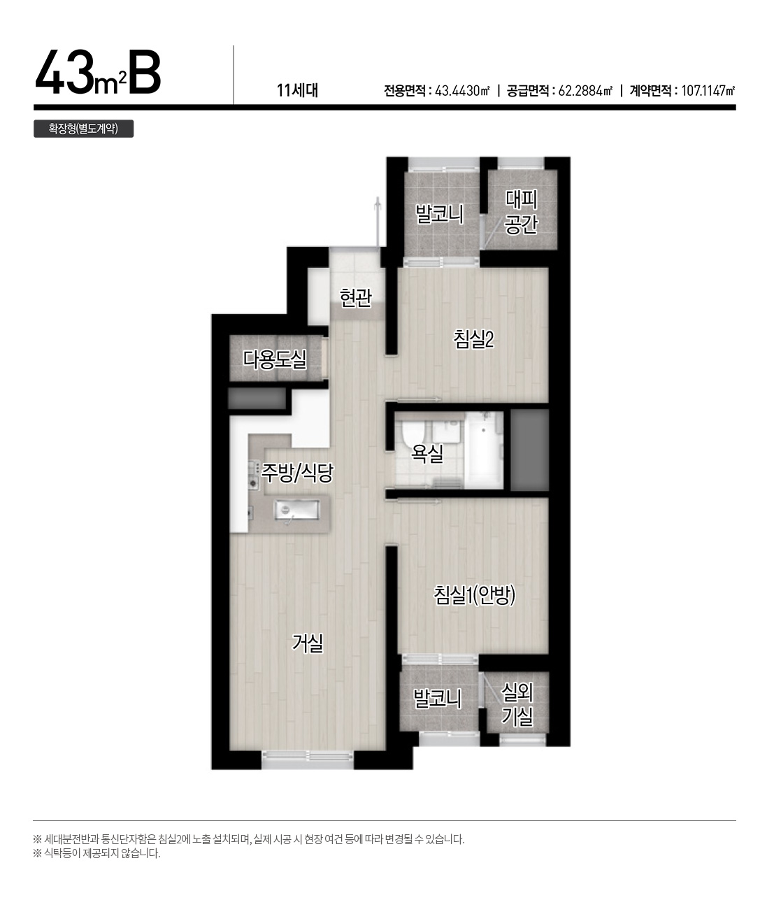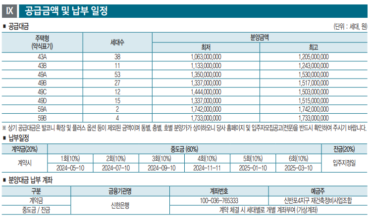 이번 분양공급 주택형은 43형 / 59형만 가능 (12억 ~ 17억)