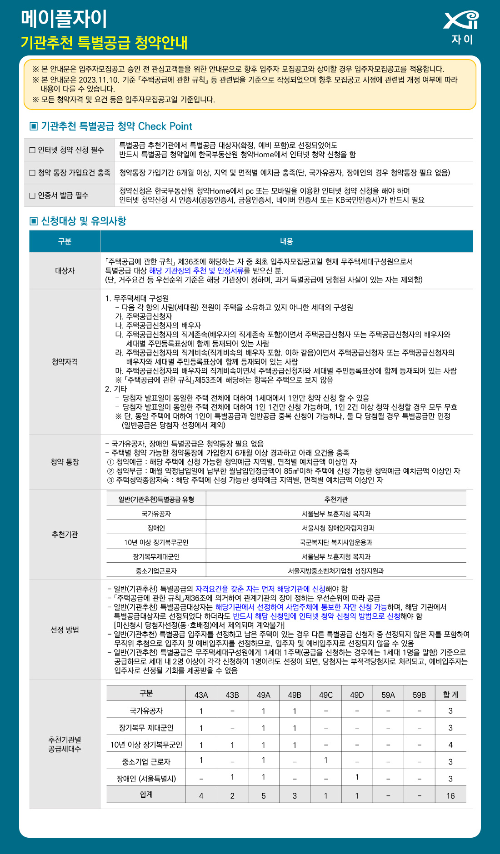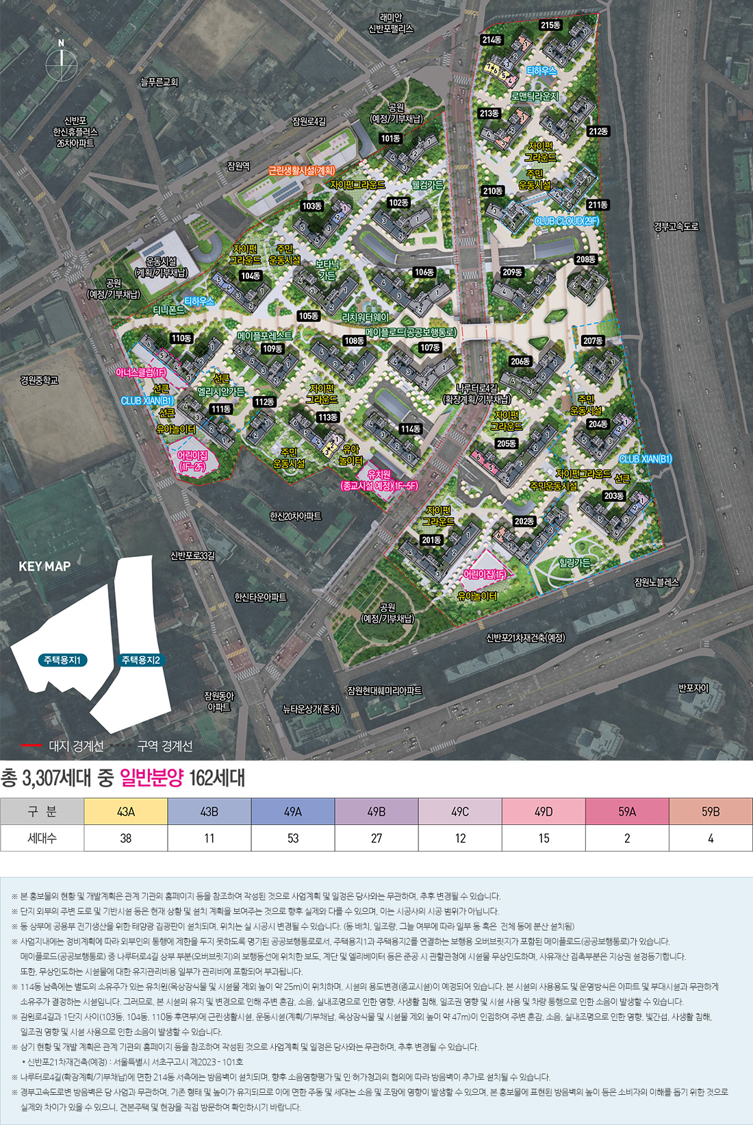 분양공급은 43형(18평) / 49형(21평) /59형(25평)만 가능